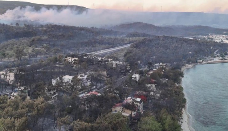 Sabahın erken saatlerinde havanın aydınlanmasıyla yangına havadan ve karadan yoğun müdahale devam ediyor. Güzelyalı bölgesindeki villalarda yaşanan hasar ise sabahın erken saatlerinde dron ile görüntülendi. Yangının acı bilançosu dron görüntülerine yansıdı.