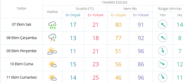 Meteoroloji'nin İzmir için açıkladığı 5 günlük hava raporu ise şöyle,