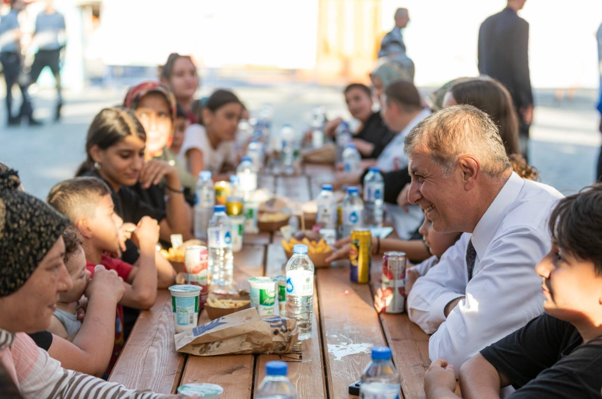 İzmir Büyükşehir Belediyesi, 94. İzmir Enternasyonal Fuarı’nda (İEF) İzmirli çocukları ağırlamayı sürdürüyor. Fuarın üçüncü gününde İzmir Büyükşehir Belediye Başkanı Dr. Cemil Tugay ve eşi Öznur Tugay, Sosyal Hizmetler Dairesi Başkanlığı’na bağlı Buca Göksu, Konak Ballıkuyu ve 1. Kadriye Mahallelerindeki Dayanışma Noktalarından hizmet alan 16 anne ve 39 çocukla Kültürpark’taki yeme içme alanında buluştu.