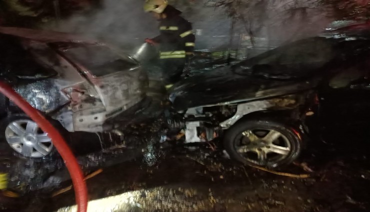 Muğla'nın Bodrum ilçesinde sanayi sitesinde palmiye ağacına yıldırım düşmesi nedeniyle çıkan yangında park halindeki 2 otomobil yandı.
