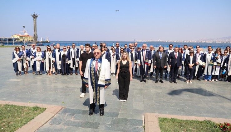 DEÜ’nün 42. Kuruluş Yıl Dönümü programının son bölümünde, törene katılan tüm DEÜ mensupları, DEÜ Rektörlük Binası önünden Cumhuriyet Meydanı'na yürüyerek, buradaki Atatürk Anıtı'na çelenk sunumu gerçekleştirdi. Rektör Vekili Ak, “Bu vesileyle adını İzmir’in kurtuluşu ve Kurtuluş Savaşı’nın sona ermesini simgeleyen günden alan Üniversitemizin tüm mensupları adına, başta Gazi Mustafa Kemal Atatürk'ü, aziz şehitlerimizi ve gazilerimizi minnet ve saygıyla andık. Cumhuriyetimizin temel değerlerine bağlı bir yükseköğretim kurumu olarak değerlerimizle uyumlu bir çizgide kararlılıkla ilerliyor, dünyada ilk 500 üniversite arasında yer alma vizyonumuza uygun çalışmalar yürütüyoruz” diye konuştu.