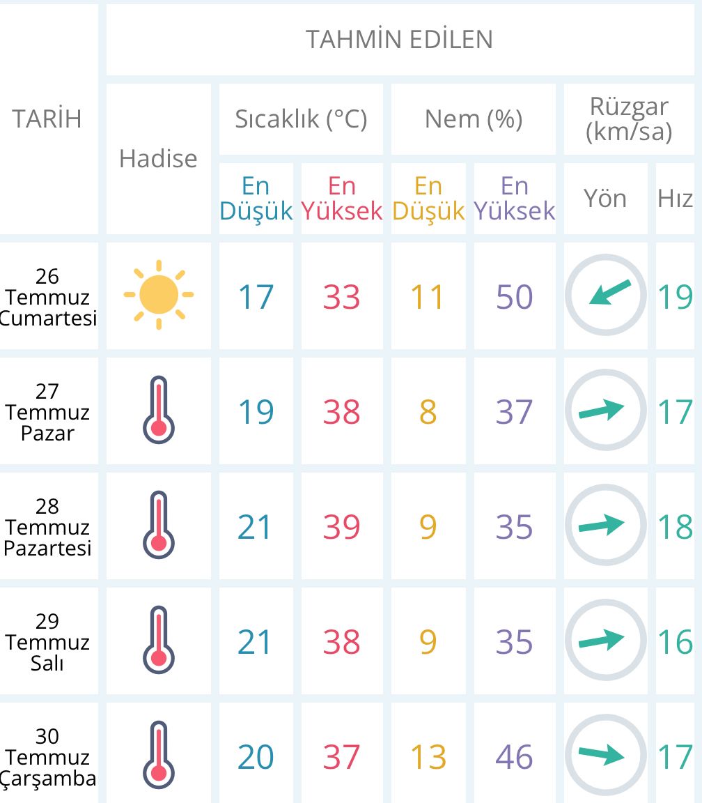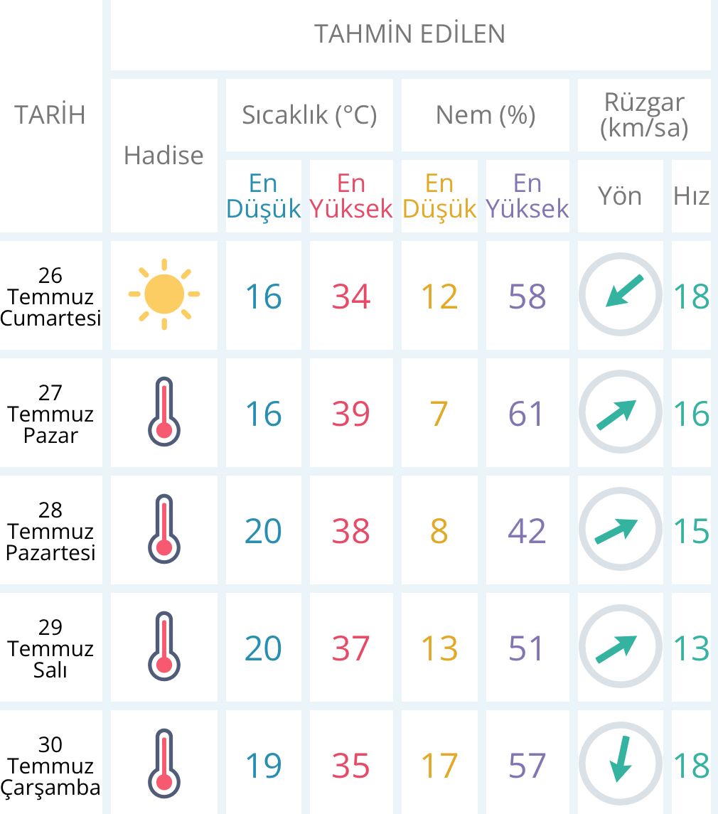Meteoroloji Genel Müdürlüğü’nün son tahminlerine göre Ege Bölgesi’nde sıcak hava dalgası etkisini sürdürüyor. Özellikle iç kesimlerde hava sıcaklıkları 40 derecenin üzerine çıkarken, kıyı illerinde nemle birlikte hissedilen sıcaklık daha da artacak. Uzmanlar, özellikle öğle saatlerinde güneş altında uzun süre kalınmaması konusunda uyarıyor.