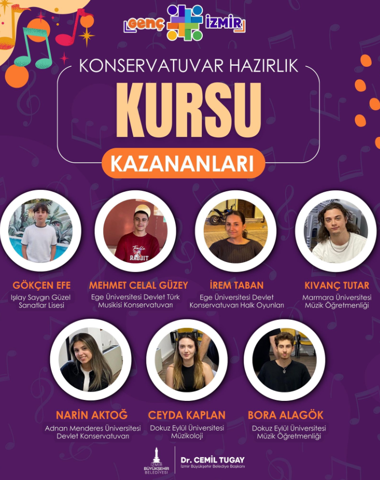 Kursa katılan öğrencilerden Gökçen Efe Işılay, Saygın Güzel Sanatlar Lisesi’ne; Mehmet Celal Güzey, Ege Üniversitesi Devlet Türk Musikisi Konservatuvarı’na; İrem Taban, Ege Üniversitesi Devlet Konservatuvarı Türk Halk Oyunları Bölümü’ne; Kıvanç Tutar, Marmara Üniversitesi Müzik Öğretmenliği’ne; Narin Aktoğ, Adnan Menderes Üniversitesi Devlet Konservatuvarı’na; Ceyda Kaplan, Dokuz Eylül Üniversitesi Müzikoloji Bölümü’ne; Bora Alagök ise Dokuz Eylül Üniversitesi Müzik Öğretmenliği’ne kabul edildi.