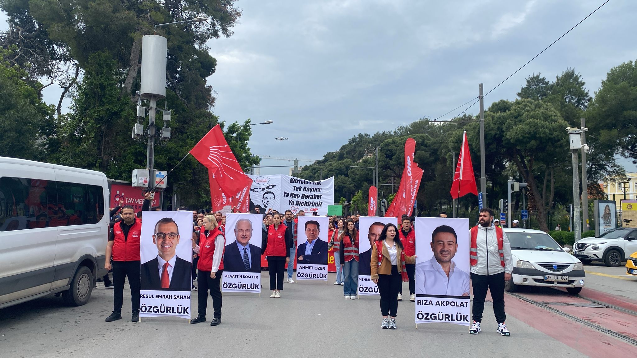 1 Mayıs Emek ve Dayanışma Günü İzmir’de coşkuyla kutlanmaya başladı. Cumhuriyet Halk Partisi İzmir İl Başkanlığı Lozan’da toplandı. Lozan’da toplanan kalabalık Gündoğdu Meydanı’na yürüyecek. Yürüyüşe; İzmir Büyükşehir Belediye Başkanı Cemil Tugay, CHP Sözcüsü Deniz Yücel, İzmir Milletvekilleri Murat Bakan, Salih Uzun, Ümit Özlale, Yüksel Taşkın ve İl Başkanı Şenol Aslanoğlu ve CHP Genel Başkan Yardımcısı Ali Mahir Başarır katıldı.