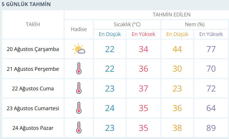 Meteoroloji 2. Bölge Müdürlüğü İzmir ilçelerinin hava raporunu açıkladı. 20 Ağustos Çarşamba günü hava sıcaklıklarında artış gözlemleniyor. Bölge bölge hava sıcaklığı değişirken il genelinde ortalama sıcaklık 33 derece olacağı tahmin ediliyor. İşte İzmir ilçelerinde yarın hava nasıl olacak cevabı...