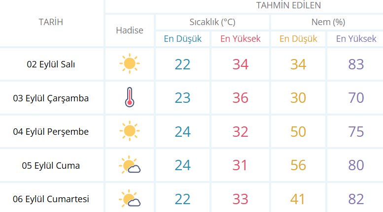 İzmir için 5 günlük genel hava raporu ise şöyle: