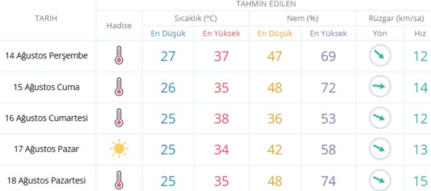Meteoroloji 2. Bölge Müdürlüğü İzmir ilçelerinin hava raporunu açıkladı. 14 Ağustos Perşembe günü hava sıcaklıklarında düşüş gözlemleniyor. Bölge bölge hava sıcaklığı değişirken bazı ilçeler serinleyecek. İşte detaylar: