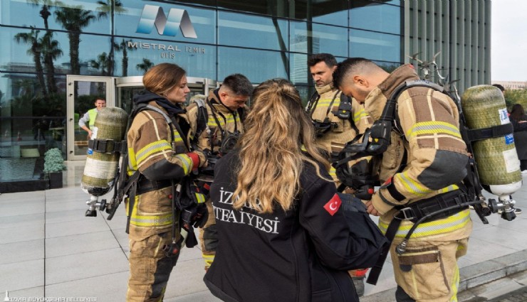 İzmir Büyükşehir Belediyesi İtfaiye Dairesi Başkanlığı, olası yangınlarda yurttaşların bilincini arttırmak, itfaiye ekiplerinin olaylara müdahale refleksini güçlendirerek can ve mal kaybını önlemek için tatbikatlarını sürdürüyor. Birçok farklı noktada düzenlenen tatbikatlara Bayraklı’daki gökdelenler bölgesi de eklendi. İzmir’in en yüksek ikinci binasında yapılan tatbikatta, senaryo gereği yapay duman verildi. Yine senaryo gereği 112 Acil Çağrı Merkezi’ne yangın ihbarı yapıldı. İhbar, İzmir İtfaiye teşkilatına yönlendirildi. Kısa sürede olay yerine ulaşan ekipler, hemen yangına müdahale etti. Senaryoda, 47 katlı binanın 11’inci katında yaralı olduğu bilgisi de paylaşıldı. Bin 500 kişinin çalıştığı 216 metre yüksekliğindeki gökdelende, yaralı kişi İzmir itfaiyesi ve paramedikler tarafından sedye ile çıkarılarak 112 Acil Kurtarma Sağlık (AKS) ambulansına bindirildi. İtfaiye personeli tarafından tüm katlar da kontrol edilerek binada herhangi birinin kalıp kalmadığına bakıldı. 15 dakika içerisinde yaklaşık 450 kişinin tahliye edildiği tatbikat başarıyla tamamlandı.