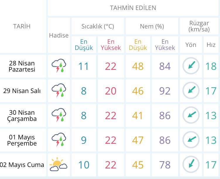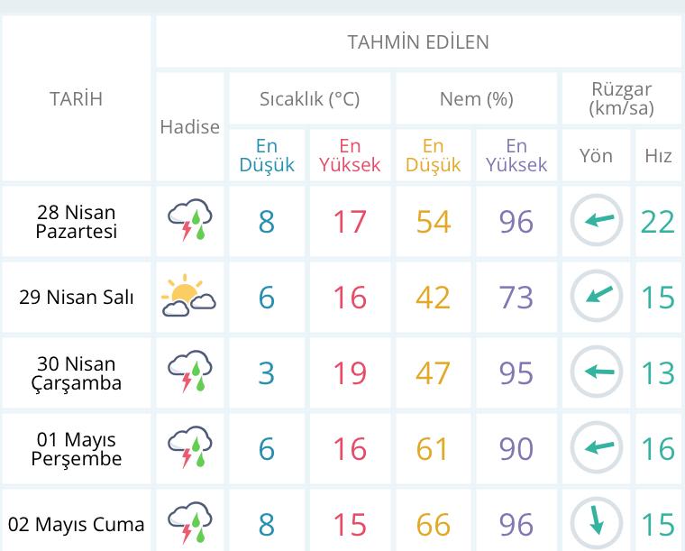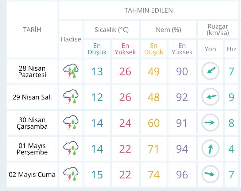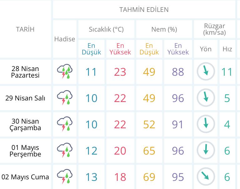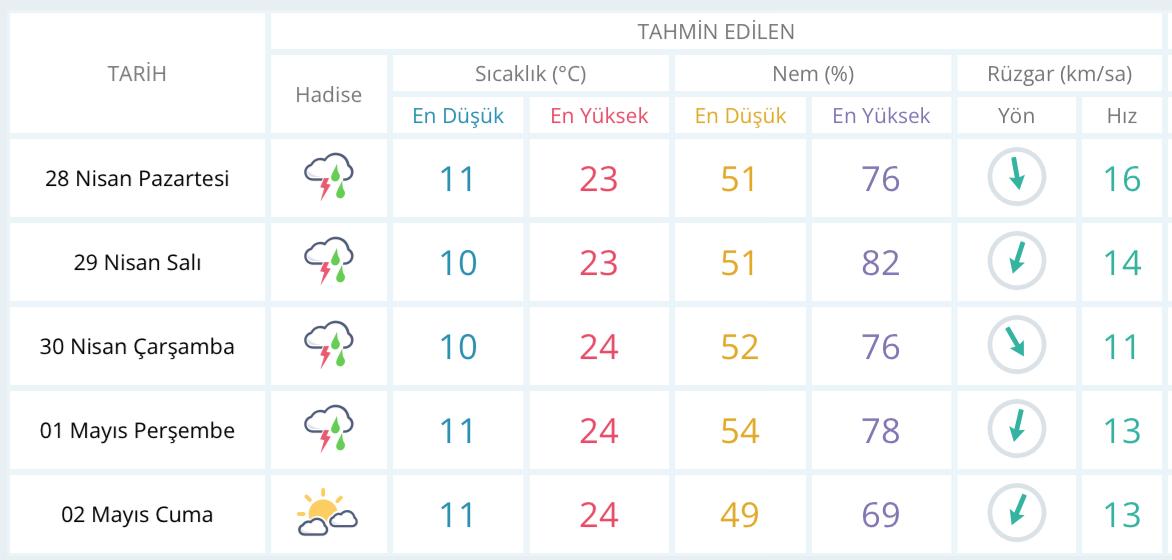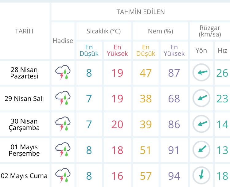 Kuzey Ege’de rüzgarın, yarın (27.04.2025 Pazar ) akşam saatlerinden itibaren kuzey ve kuzeydoğu yönlerden 6 ila 8 kuvvetinde (50-75 km/saat) fırtına şeklinde eseceği tahmin edilmektedir. Fırtınanın, Çarşamba (30.04.2025) günü öğle saatlerinde etkisini kaybetmesi beklenmektedir.