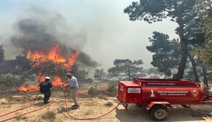 İzmir Büyükşehir Belediyesi İtfaiye Dairesi Başkanlığı ekipleri, öğle saatlerinde Karaburun Mordoğan’da başlayan orman yangınını kontrol altına almak için yoğun mesai harcıyor. İzmir İtfaiyesi ekiplerinin yanı sıra İzmir Orman Bölge Müdürlüğü’ne ait 2 uçak, 6 helikopterin havadan müdahale ettiği yangını söndürme çalışmalarında çok sayıda arazöz ve ilçe belediyelerince gönderilen su tankerleri kullanılıyor. Çalışmalara orman gönüllüleri de destek veriyor. Yangının yerleşim yerlerine ulaşmasını engelleyen ekipler, alevleri kontrol altına almak için çalışmalarını sürdürüyor.