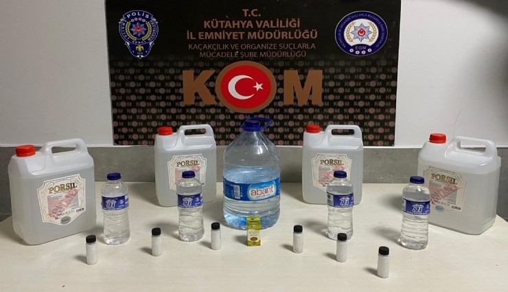 Kütahya'nın Simav ilçesinde, Kaçakçılık ve Organize Suçlarla Mücadele Şube Müdürlüğü ve Simav İlçe Emniyet Müdürlüğü ekiplerince düzenlenen operasyonda, 24 litre etil alkol ve 7 adet etil alkol yapımında kullanılan aroma ele geçirildi.