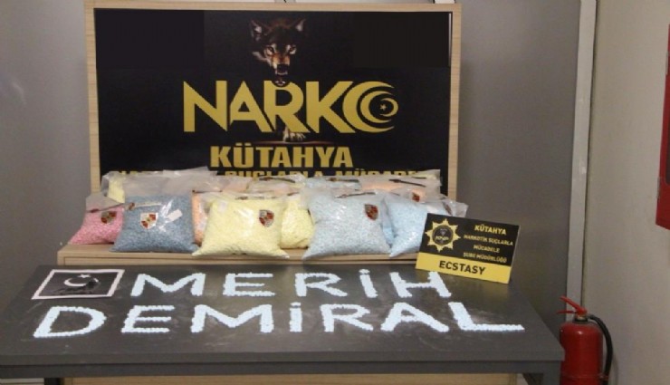Kütahya İl Emniyet Müdürlüğü Narkotik Suçlarla Mücadele Şube Müdürlüğü ekiplerince yapılan çalışmalar sonucu, Uygulama Noktasında durdurulan bir araçta yapılan aramada, 160 bin adet 64 kilo 890 gram Ecstasy maddesi ele geçirildi. Araç içerisindeki U.Ö.(23) isimli şahıs gözaltına alındı. Devam eden çalışmalarda şüpheli şahısla bağlantılı olduğu tespit edilen B.D. (27 ) ve O.D. (34 ) isimli şahıslar içinde bulundukları araç ile birlikte Antalya Narkotik Suçlarla Mücadele Şube Müdürlüğü ekipleri tarafından yakalandı. Şüpheliler Kütahya’da Narkotik Suçlarla Mücadele Şube Müdürlüğü ekiplerine teslim edilmek üzere gözaltına alındı. Bu arada emniyet güçlerince 64 kilo 890 gram ecstasy maddesinin sergilendiği standa, UEFA tarafından Bozkurt işareti yaptığı gerekçesiyle 2 maç ceza verilen milli futbolcu Merih Demiral’in isminin yazılması dikkat çekti.