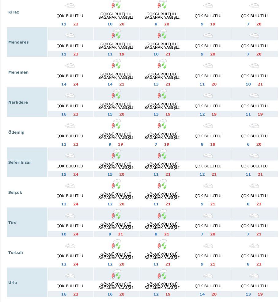 Sıcaklıkların hafta boyunca 20-24 derece aralığında seyretmesi tahmin ediliyor. Çarşamba günü de sağanak yağışın etkisini sürdüreceği, Perşembe ve Cuma günlerinin ise çok bulutlu geçeceği bildirildi.