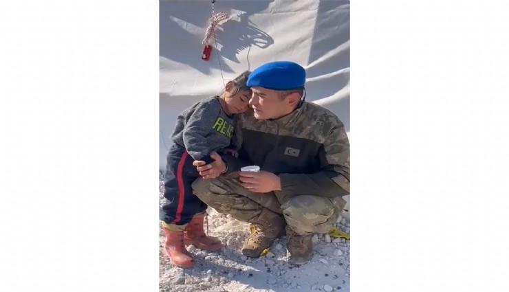 Milli Savunma Bakanlığı tarafından paylaşılan görüntüde minik bir kız çocuğunun, yere çökmüş askerin omzuna yattığı anlar yer aldı. Mehmetçik ile minik çocuğun görüntüleri duygusal anlara neden oldu.