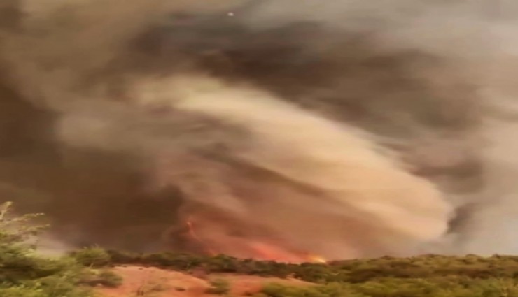 Orman yangınının en çarpıcı görüntüsü: Alevler adeta hortum oluşturdu