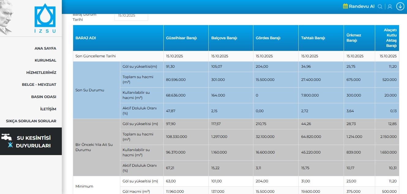 Sayıştay raporunda şu bilgiler de yer aldı: “İdare ile Devlet Su İşleri Genel Müdürlüğü (DSİ) arasında İzmir iline içme, kullanma ve endüstri suyu sağlanması amacıyla Gördes Barajı ile ilgili 16.11.2006 tarihinde, yapım bedelinin yarısı, su verilmeye başlandıktan sonra İZSU tarafından karşılanmak üzere bir T.C. Sayıştay Başkanlığı İzmir Su ve Kanalizasyon İdaresi Genel Müdürlüğü 2022 Yılı Sayıştay Düzenlilik Denetim Raporu 69 protokol imzalanmış, protokol gereği İZSU’nun, kendisine düşen payı barajdan su verilmeye başlandıktan sonra ödemeye başlaması gerekirken, su verilmeye başlanmadan; tam olarak su verilemeyen (suyun hiç verilemediği ya da tahminlerden çok daha düşük oranlarda verildiği) dönemler için DSİ tarafından gecikme faizi ile birlikte bedel talep edilmiş, bu da İZSU açısından satamadığı suyun maliyetine katlanmak durumunda bırakılmış, bütçesinde karşılıksız bir yük oluşturmuştur. Protokole göre yapımı gerçekleştirilen ve maliyetine ortak olunan Gördes Barajı’ndan İzmir’e her yıl yaklaşık 59 milyon m³ su verilmesi planlanmaktayken 2011-2020 yılları arasındaki on yıl içinde İzmir’e gelmesi gereken 590 milyon m³ su yerine, bu suyun %23,3’üne karşılık gelen 137,6 milyon m³’ü gelmiştir. 2016, 2017 ve 2018 yıllarında gerek barajda meydana gelen teknik problemlerden (baraj gövdesinde ortaya çıkan su tutamama sorunu) gerekse de DSİ’nin yapması gereken imalatları henüz tamamlayamamış olmasından dolayı hiç su verilememiş, buna rağmen DSİ 2011 yılında T.C. Sayıştay Başkanlığı İzmir Su ve Kanalizasyon İdaresi Genel Müdürlüğü 2022 Yılı Sayıştay Düzenlilik Denetim Raporu 70 beklenenin çok altında şehre deneme suyu vermiş olmasını esas alarak, 2011 yılının da önüne geçip 2010 yılından itibaren hesaplayarak İZSU’dan baraj bedeli tahsilatına ilişkin 18.12.2014 tarihinde talepte bulunmuştur.”