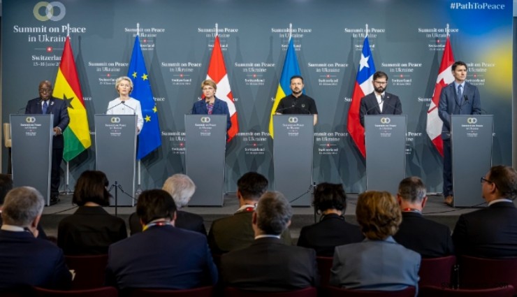 İsviçre'de dün başlayan Ukrayna Barış Konferansı sona erdi. Nidwalden kantonundaki Lucerne Gölü'nün yanında yer alan Bürgenstock kasabasında 92 ülkenin ve 57 liderin katıldığı konferansın ardından basın toplantısı düzenlendi. Ukrayna Devlet Başkanı Vladimir Zelenskiy, AB Komisyonu Başkanı Ursula von der Leyen, İsviçre Konfederasyon Başkanı Viola Amherd katıldığı toplantıda ortak bildiri açıklandı. Amherd, katılımcı devletlerin büyük kısmının gelecekteki barış sürecine yönelik ortaklaşa formüle edilmiş pozisyonlar ve sonraki adımlar üzerinde mutabık kaldığını belirtti. Konferanstan çıkan bildiriyi uluslararası hukuk ve BM Şartı temelinde barış için uluslararası toplumdan gelen güçlü bir sinyal olarak değerlendiren Amherd, Bürgenstock zirvesinin sonuçlarının Ukrayna'da adil ve kalıcı bir barışa giden zorlu yolda ilk önemli adımı teşkil ettiğini ifade etti.