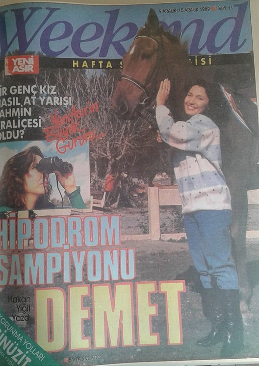 Şimdi matrak bir anımı anlatacağım. Yeni Asır’da Weeend isimli bir hafta sonu magazin eki yönetmeniyim. Demet, yine at yarışları tahmininde yılın şampiyonu olmuştu. Gazete üst yönetimi Demet’i “kapak konusu” yapın diye bana talimat verdi. Biz de Demet’i aldık, hipodroma götürdük, beygirlere sarılırken, onları öperken çeşitli artistik fotoğraflarını çektik. Kapak konusu yaptık.